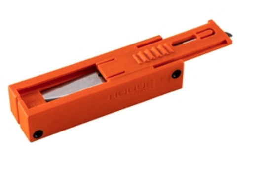 The Hogue Expel Scalpel Blade Dispenser is a compact, high-visibility storage solution preloaded with five #60 style replaceable blades. Its durable orange polymer housing ensures easy blade access and safe handling in the field or workshop. A must-have for quick, safe and hygienic blade swaps with the Hogue Expel series.