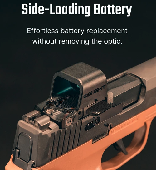 • Side-Loading Battery: Effortless battery replacement without removing the optic ensures hassle-free re-zeroing. A high-end CR1620 battery offers easy accessibility while maintaining steady performance.