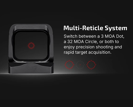 - 3 MOA Dot & 32 MOA Circle: Switching between dot-and-circle, dot-only, or circle-only reticles, you can tailor your aiming solution to any shooting scenario. The sharp and bright dot-and-circle reticle provides a cutting-edge aiming experience.