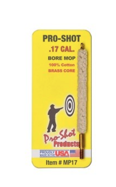 Pro-Shot Rifle, Shotgun, and Pistol bore mops are 100% cotton and manufactured with a brass core and looped end.