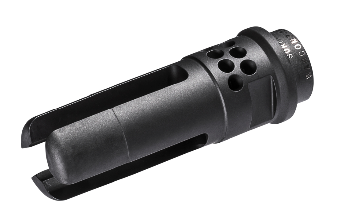 Choose The Best Of Both Worlds. Flash hider? Muzzle brake? The proprietary design of SureFire’s WARCOMP flash hiders/suppressor adapters provides the best attributes of both devices. WARCOMPs deliver superior flash reduction and significantly reduce muzzle rise, helping to conceal your location, preserve your dark-adapted vision and keep you on target for faster follow-up shots. They effectively eliminate more than 98% of all muzzle flash, even on short-barreled rifles, and their port direction can be optimized for virtually any shooting style. Precision machined from U.S. mill-certified, heat-treated stainless steel bar stock, every WARCOMP includes high-precision single-point cut barrel threads for optimum thread interface. DLC coating provides maximum protection under harsh environmental conditions and facilitates cleaning even after extreme use. Surefire WARCOMPs are the best suppressor adapters in the world. Period.